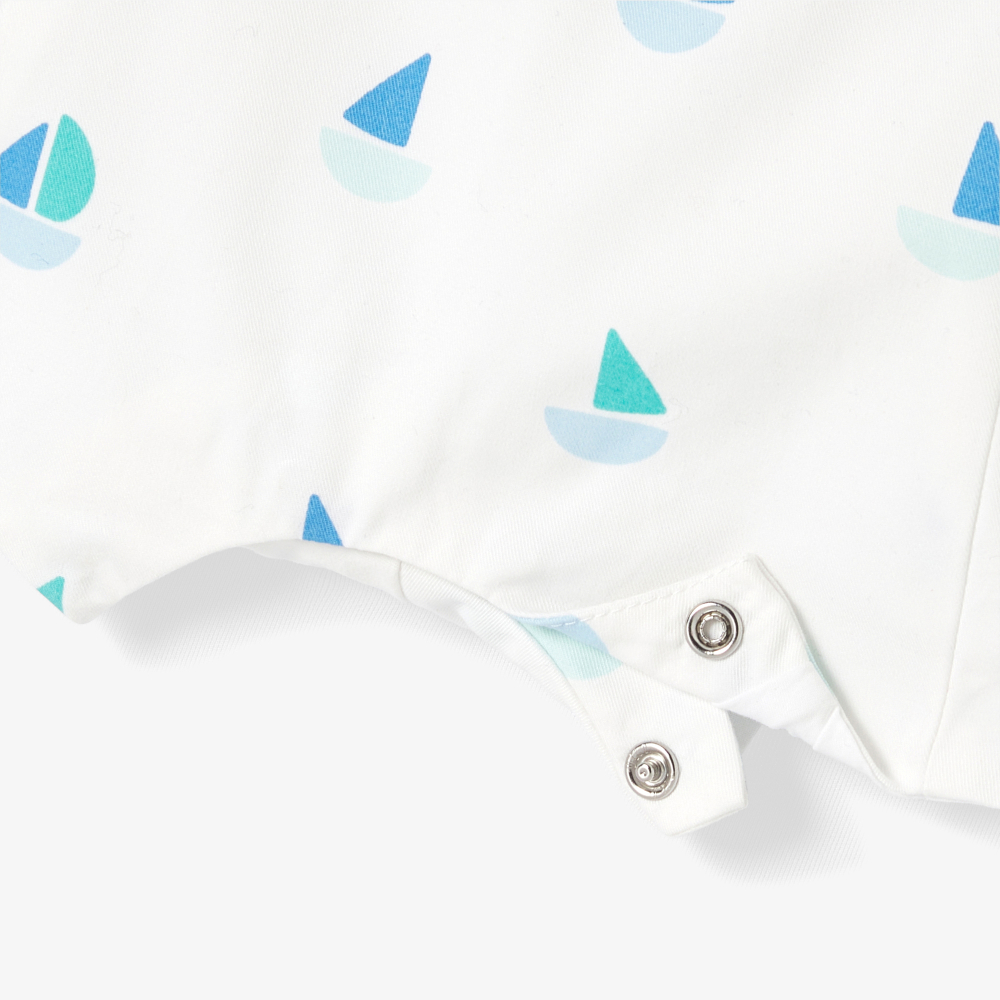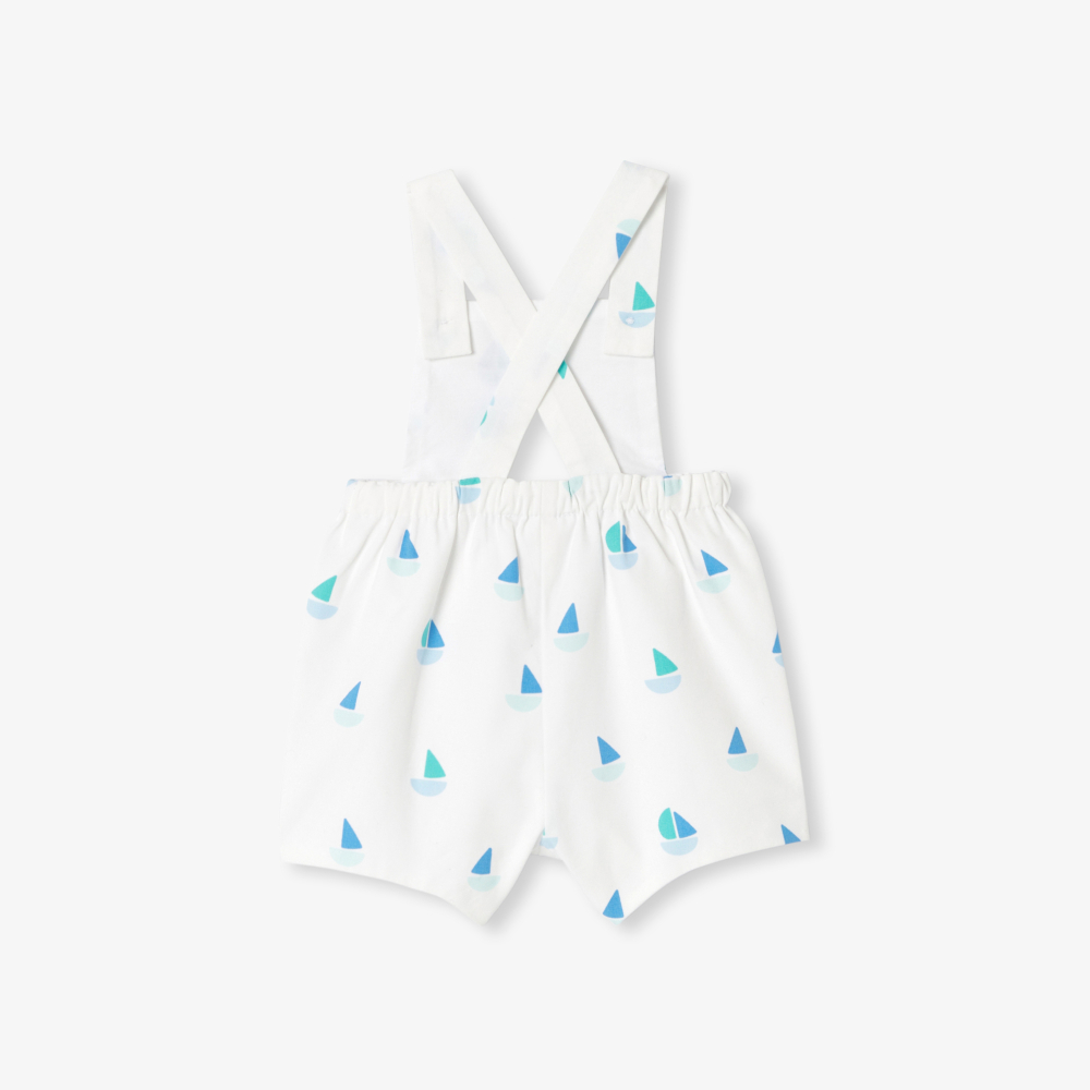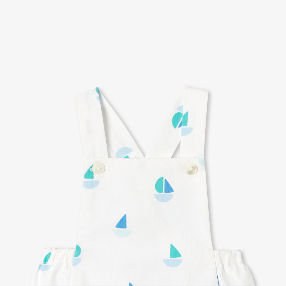 Yaz sezonuna deniz esintili bir şıklıkla eşlik eden bu erkek bebek salopet, hafif yapısı ve ferah duruşuyla sıcak günler için ideal bir seçenek sunuyor. Konforu artıran poplin astarı, minik tekne desenleri ve arkadaki çapraz askı detayıyla hareket kazanan bu model, yaz kaçamaklarında bebeğinizin stilini zarif ve neşeli bir dokunuşla tamamlıyor.