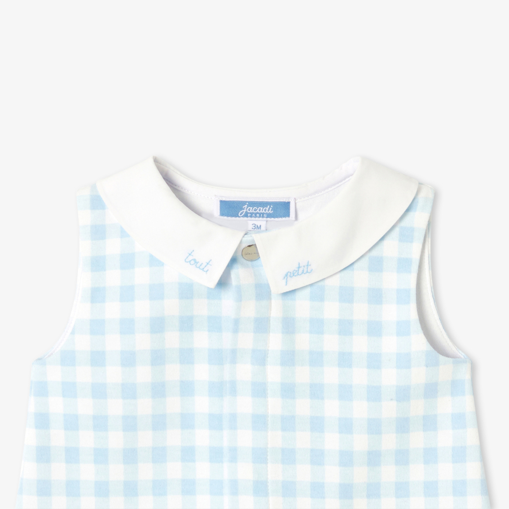 Yaz gardırobunun vazgeçilmez parçalarından biri olan bu erkek bebek tulum, zarafet ile konfor arasında kusursuz bir denge kuruyor. Yumuşak jersey dokusuyla gün boyu rahatlık sunan bu model, ön bölümdeki pratik çıtçıt kapaması sayesinde kolayca giydirilebiliyor. Üzerinde “tout petit” işlemesi bulunan imza niteliğindeki poplin yakası ise tasarıma incelikli ve sevimli bir dokunuş katıyor. Günlük kullanımda ve tatil valizinde rahatlıkla yer bulacak bu parça, yenidoğan hediyesi olarak da öne çıkıyor.