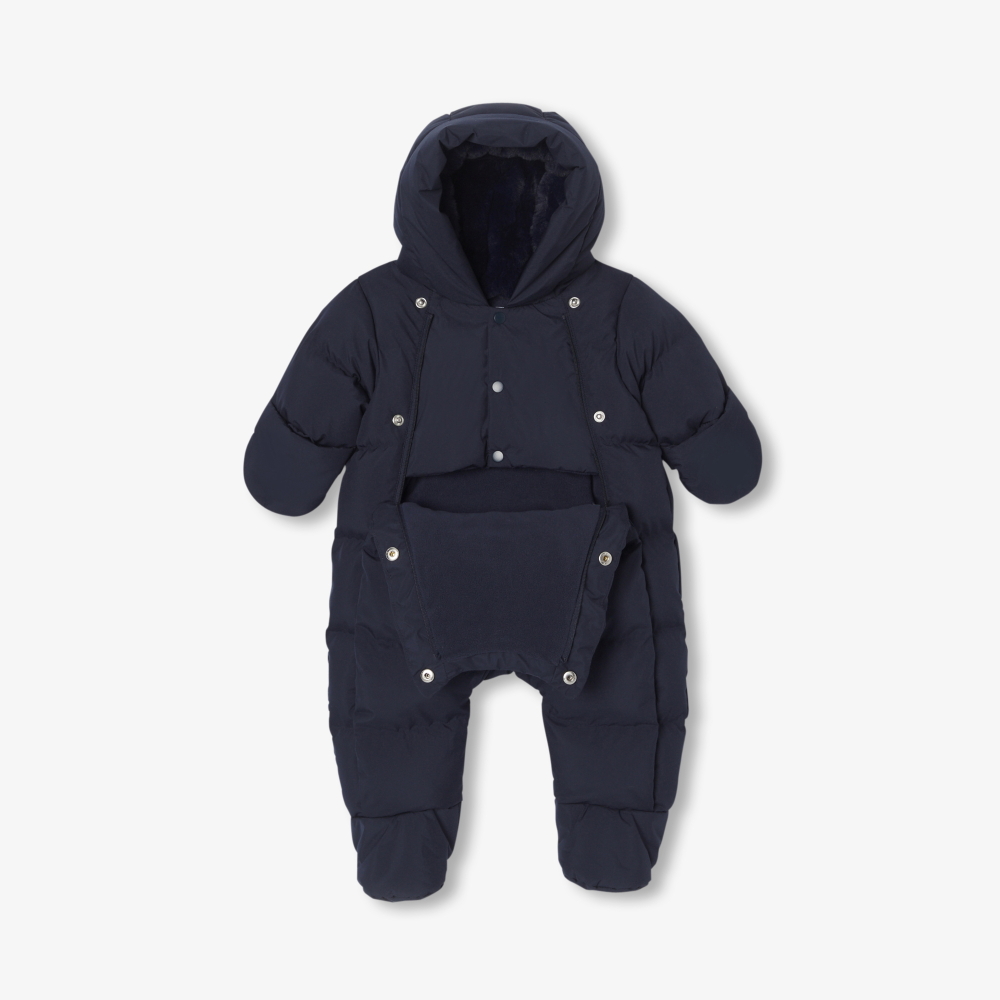 Bu bebek astronot mont, zamansız şıklık ve ödünsüz konfor sunar. Su geçirmez naylondan üretilmiş, tamamen mikro polar astarlı ve suni kürk astarlı kapüşonlu olan bu tulum, öne doğru tamamen açılır, böylece bebeğinizi yatarak veya oturarak tamamen güvenli bir şekilde giydirebilirsiniz. Sıcak, yumuşak ve örtücü olan bu tulum, bebeğiniz doğumhaneden çıktığı andan itibaren ve tüm kış gezilerinde onu takip edecektir.