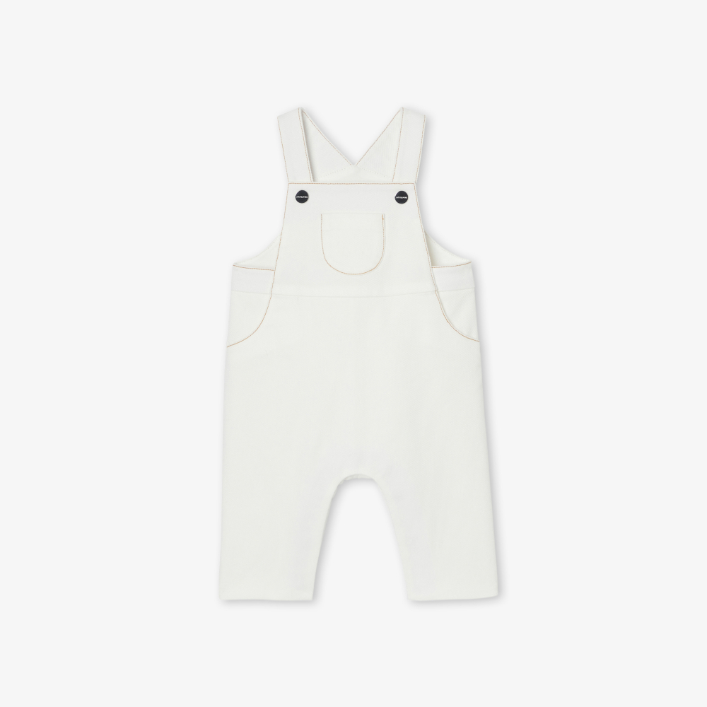 Denim kumaşın esnekliği ve örme astarın rahatlığıyla bu bebek salopeti bu sonbaharda yumuşak renklerde geliyor. Omuz ve bacak kısmındaki çıtçıtlı açıklıklar sayesinde günlük kullanım ve kreş için ideal olan bu minimalist ve çok yönlü model, uzun kollu bir tulum ve kaşmir hırka ile mükemmel bir şekilde uyum sağlar.
