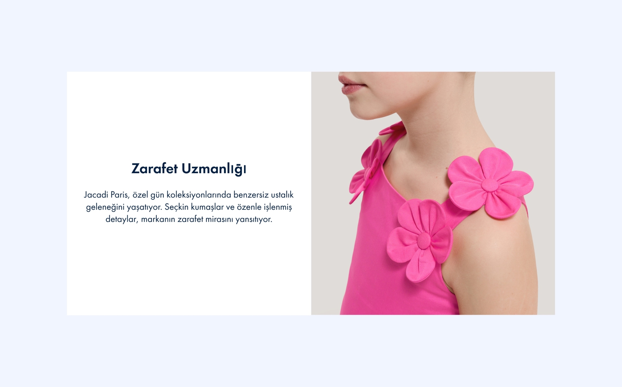 Dünyaca tanınmış Fransız bebek ve çocuk markası Jacadi Paris Bebek ve Çocuk koleksiyonlarında; Yenidoğan Bebek, Kız Bebek, Erkek Bebek, Kız Çocuk ve Erkek Çocuk için kıyafet, ayakkabı, mont, kaban ve çeşitli aksesuarlar bulunmaktadır. Yenidoğan Bebek hediyesi mi arıyorsunuz? Jacadi’nin Yenidoğan Bebek hediye fikirlerini keşfedin. 1 aydan 12 yaşına kadar stil sahibi bebek ve çocuklar için birbirinden şık kazaklar, hırkalar, sweatshirtler, bluzlar, tişörtler, gömlekler, pantolonlar, çoraplar ve diğer akseuarlar Jacadi.com.tr'de sizleri bekliyor. Kız ve erkek çocuklar için moda koleksiyonumuzu keşfedin. Jacadi Paris Türkiye online alışveriş sitesine üye olun, Jacadi yeni sezon ürünlerini, Jacadi kampanyalarını ve Jacadi sezon sonu indirimlerini ve fırsatlarını takip edin. Fransız moda markası Jacadi Paris koleksiyonunlarını online mağazamızdan taksit ile satın alabilirsiniz. Organik pamuk ve diğer sürdürülebilir kumaşlardan üretilen yeni çevre dostu Jacadi koleksiyonunu keşfedin.