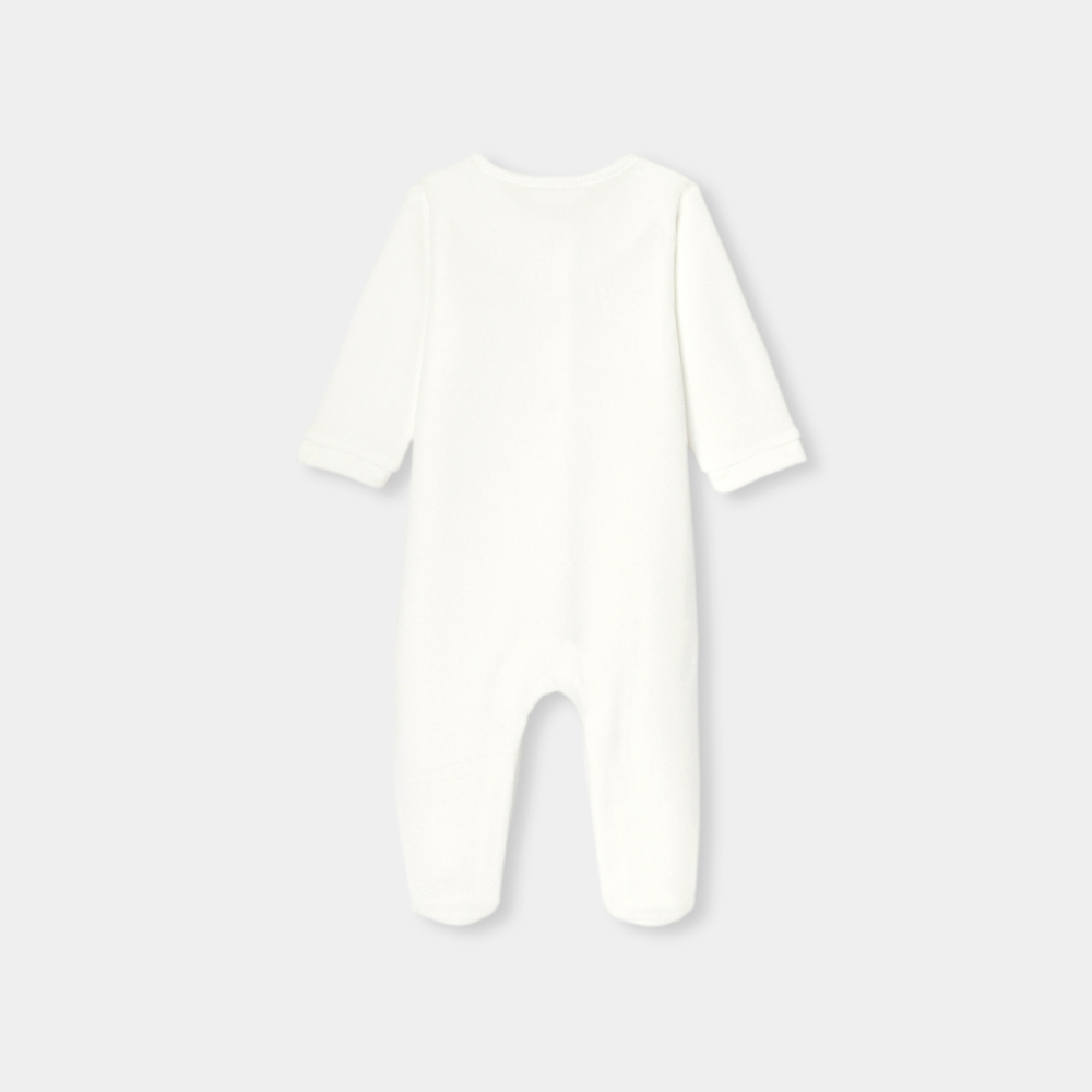 Jacadi gardırobunun simgesi olan bu kız bebek tulumu, yumuşak ve rahat bukle kadife kumaştan üretilmiştir. Önündeki çıtçıtlı fermuarı sayesinde kolayca giyilebilen bu şık ve minimalist model, ilk çeyiz için vazgeçilmezdir.