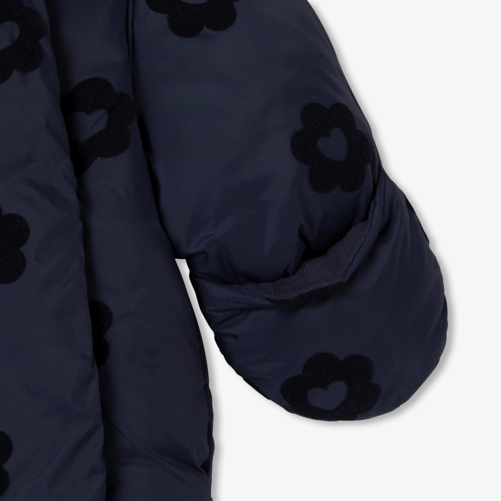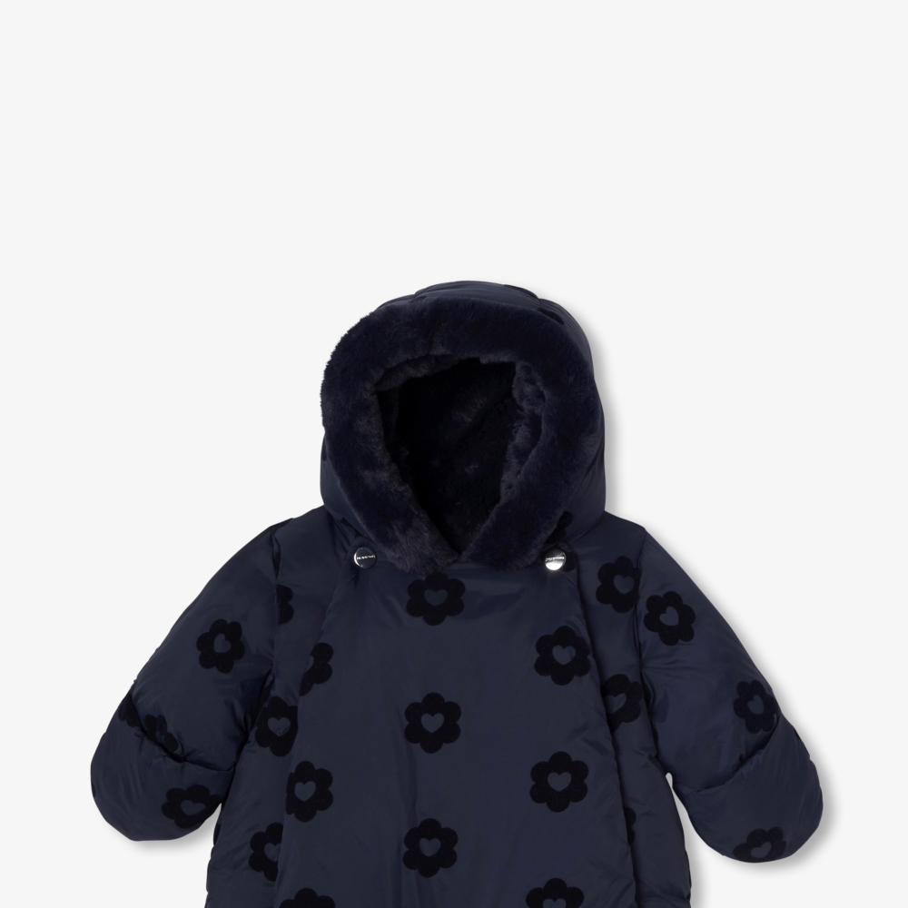 Bu su geçirmez astronot mont şıklık ve pratikliği bir araya getiriyor. Çift fermuarlı yapısı sayesinde bebeğinizi yatar veya oturur pozisyonda giydirmek kolaydır. Mikro polar astarı ve suni kürk kapüşonu sıcaklık ve konfor sağlar. Küçük, ton sür ton kalplerle süslenmiş bu vazgeçilmez tulum, bebeğinize doğumhaneden çıktığı andan itibaren ilk ayları boyunca eşlik edecektir. Su geçirmezlik işlemi, suyun giysinin yüzeyinden kaymasını sağlar. Hafif yağmura karşı korur, ancak uzun süreli maruz kalma veya şiddetli yağmur durumunda suyun geçmesini engellemez.