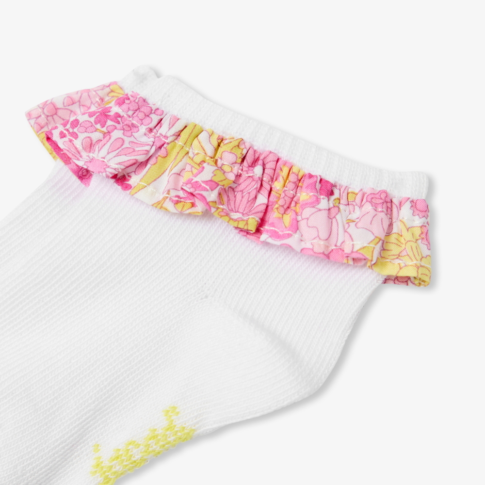 Liberty kumaştan zarif fırfır detaylarıyla süslenen bu kız bebek çorap, ilkbahar kombinlerine şık bir dokunuş katar. Günlük kullanımdan özel anlara kadar her stile uyum sağlayan bu model, balerin ayakkabılarla mükemmel bir şekilde tamamlanır. Yumuşak yapısı sayesinde kolay giydirilir ve gün boyu konfor sunar.
