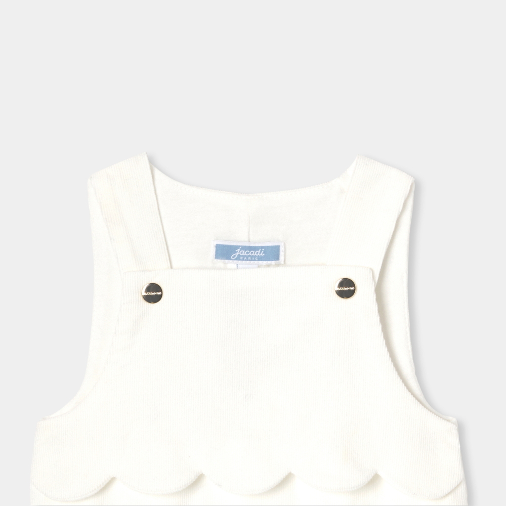 Otantik kadife şıklığını sunan, klasik kesimi ve kıvrımlı detaylarla modernize edilmiş bu kız bebek salopet, şık ve rahat bir retro sezon vadediyor. Yumuşak ve kaplayıcı triko astarı, askılardaki ve kasık kısmındaki çıtçıtlarıyla pratik kullanım sunar. Fırfırlı body ve kalp desenli hırka ile kombinlendiğinde trendi bir siluet oluşturur.