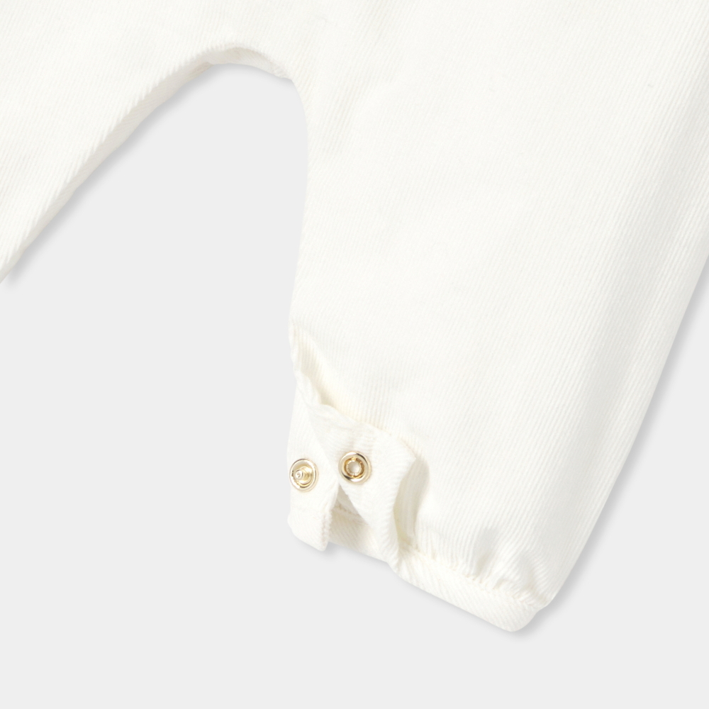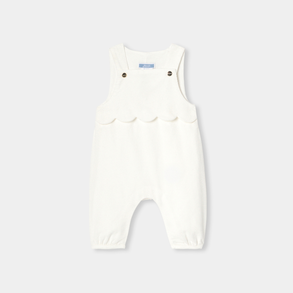 Otantik kadife şıklığını sunan, klasik kesimi ve kıvrımlı detaylarla modernize edilmiş bu kız bebek salopet, şık ve rahat bir retro sezon vadediyor. Yumuşak ve kaplayıcı triko astarı, askılardaki ve kasık kısmındaki çıtçıtlarıyla pratik kullanım sunar. Fırfırlı body ve kalp desenli hırka ile kombinlendiğinde trendi bir siluet oluşturur.