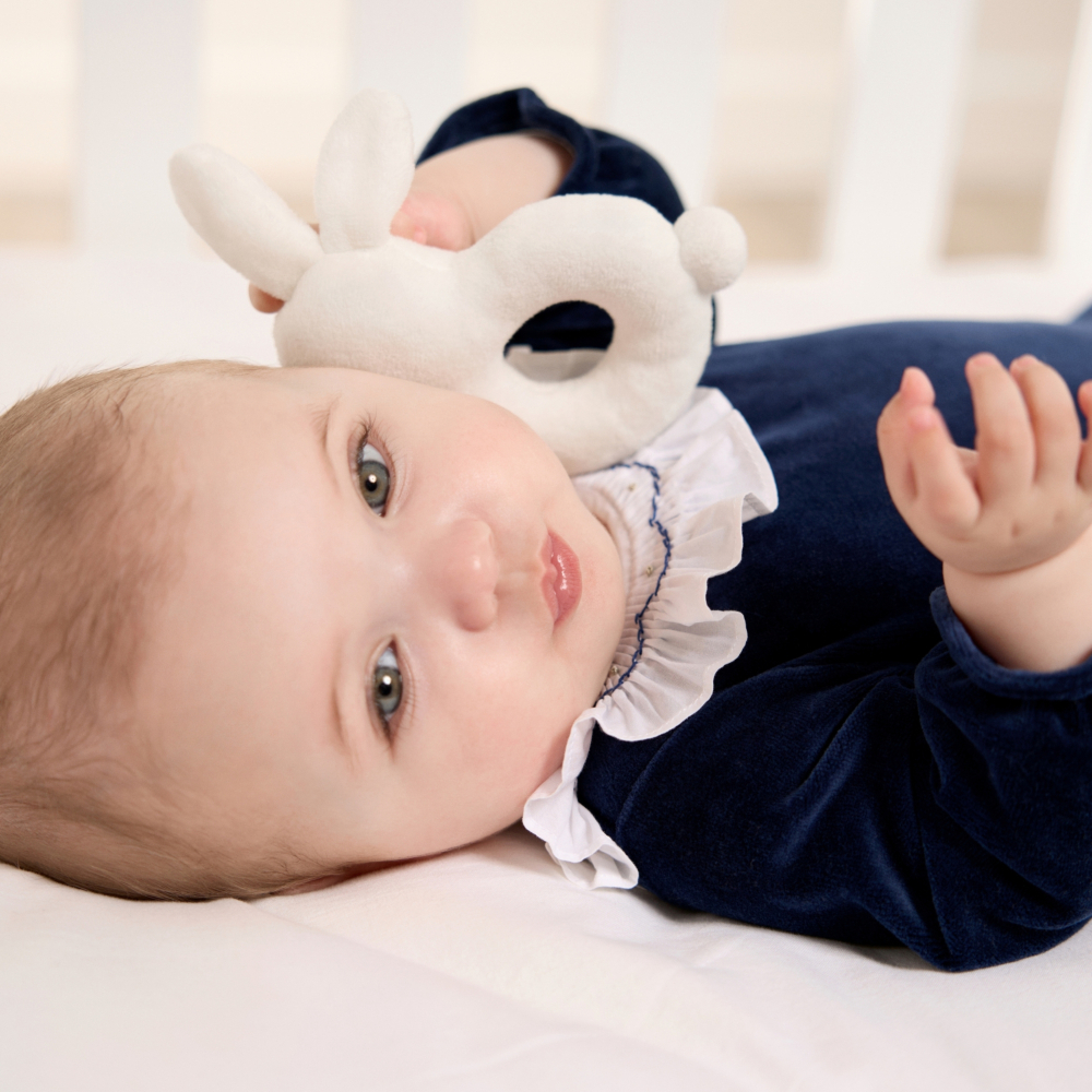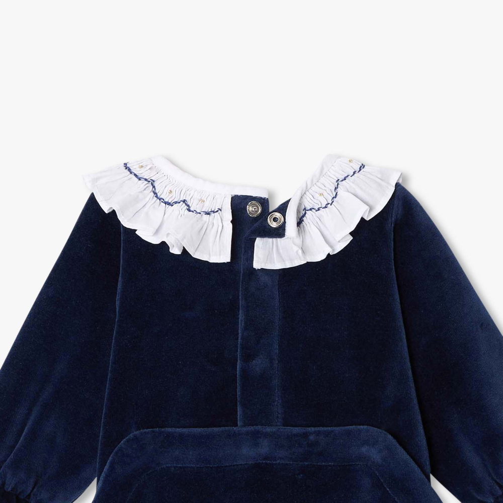 Jacadi’nin zarafetini ve ustalığını yansıtan bu kız bebek kadife tulum, yumuşacık dokusu ve şık detaylarıyla öne çıkar. Esnek ve konforlu kadife kumaşı, beyaz, pudra pembe veya lacivert tonlarıyla buluşurken; elde işlenen nervürlü fırfır detayı bu ikonik modele ayrı bir zarafet katar. Hem hediye etmek hem de miniklerin kış gardırobuna eklemek için ideal bir seçimdir.