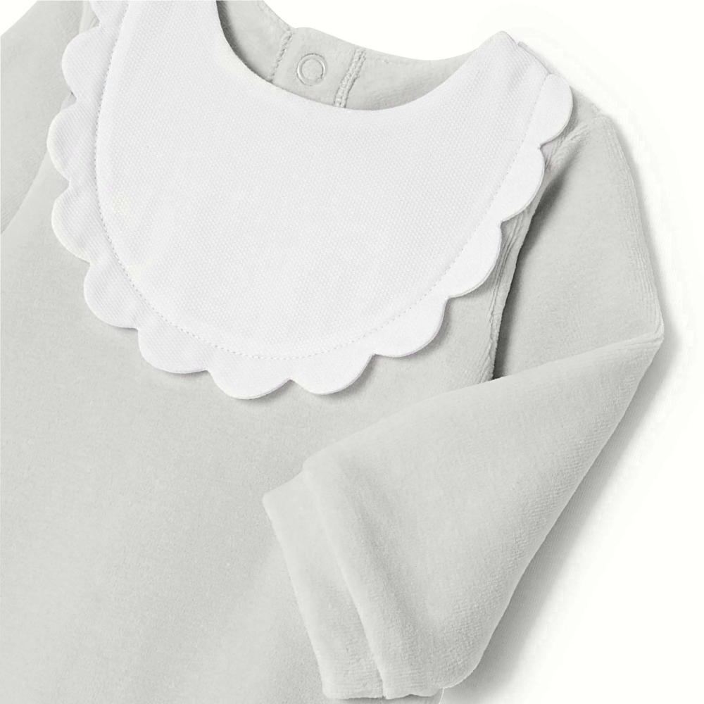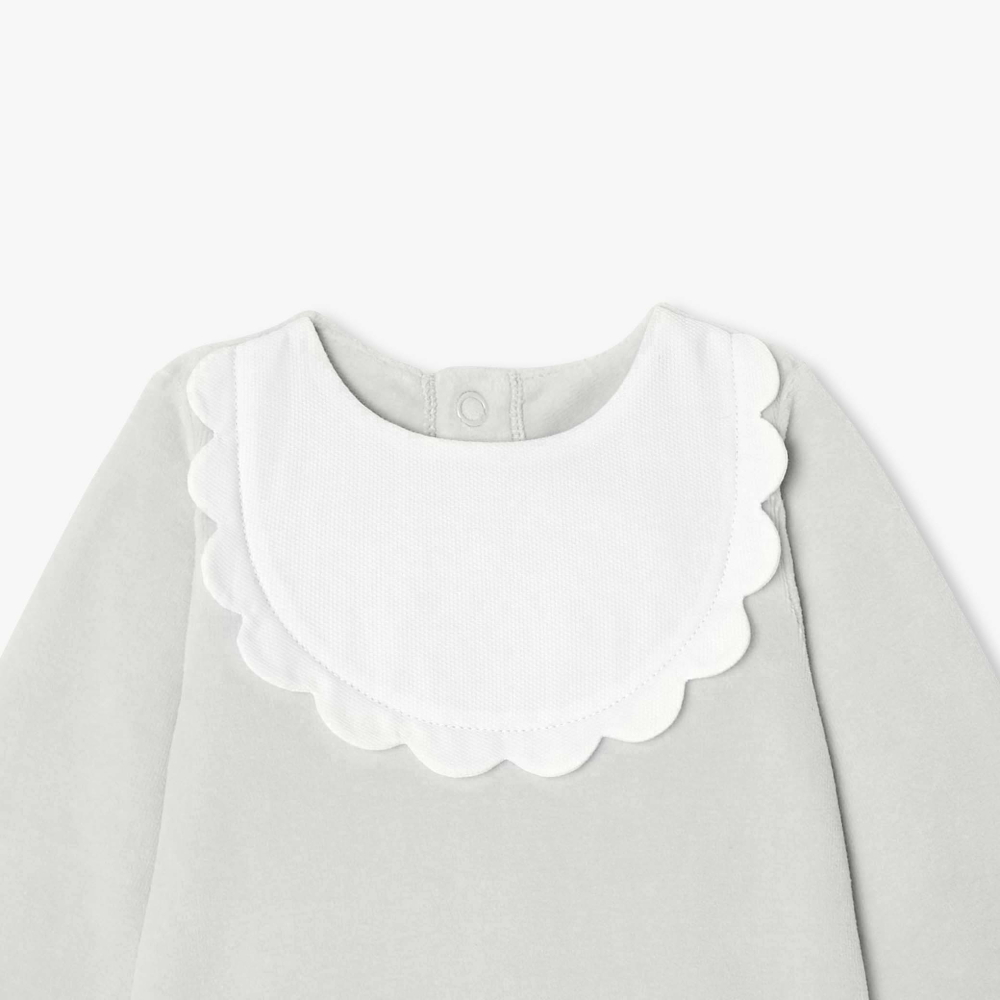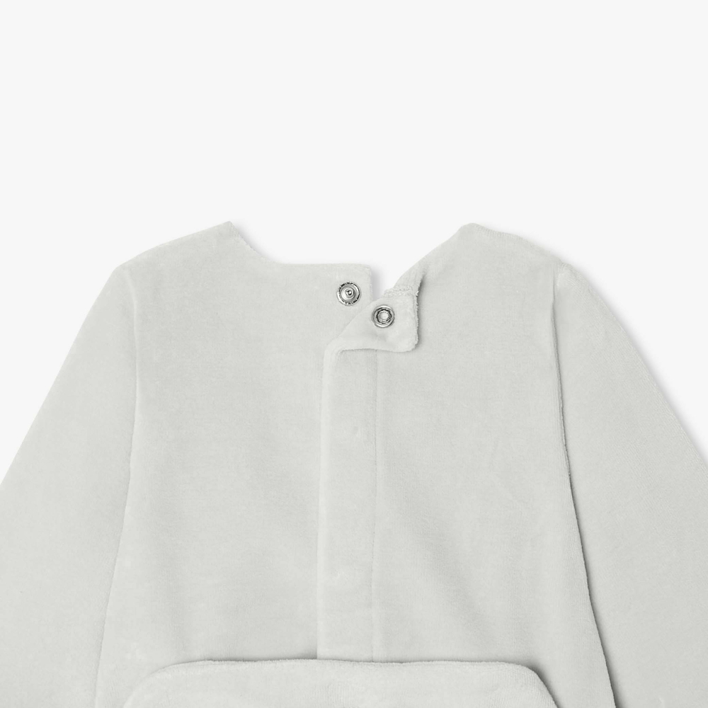 Grafik zarafet ve pratikliği bir araya getiren bu kız bebek kadife tulum, sonbahardan itibaren miniklerin gecelerine eşlik etmek için tasarlandı. Yumuşak ve esnek kadife dokusu konfor sunarken, pamuk pike kumaştan yapılmış kabartmalı, dalga detaylı ön panel modele otantik bir şıklık katar. Arkadaki gizli çıtçıtları sayesinde kolayca giyilip çıkarılabilen bu tulum, bebeğinizin gardırobunda mutlaka bulunması gereken temel parçalardan biridir.