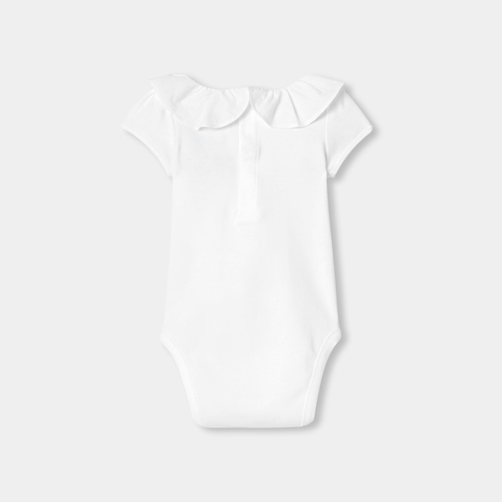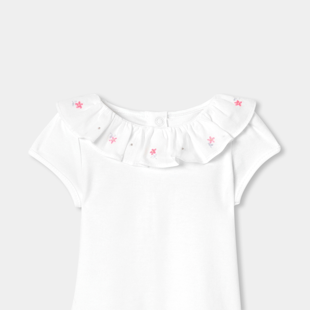 Küçük kızların yaz kombinlerine zarif ve modern bir dokunuş kazandıran bu bodysuit, yumuşak ve esnek interlock pamuk dokusuyla konforu incelikli detaylarla buluşturuyor. Çiçek işlemeli poplin yakası ve hafif balon formundaki kısa kolları sayesinde narin bir hacim kazanan bu parça, tek başına şık bir görünüm sunarken elbiselerin içinde de kusursuz bir tamamlayıcı olarak öne çıkıyor. Günlük kullanımda hem pratik hem rafine bir seçenek arayanlar için ideal bir tasarım sunuyor.