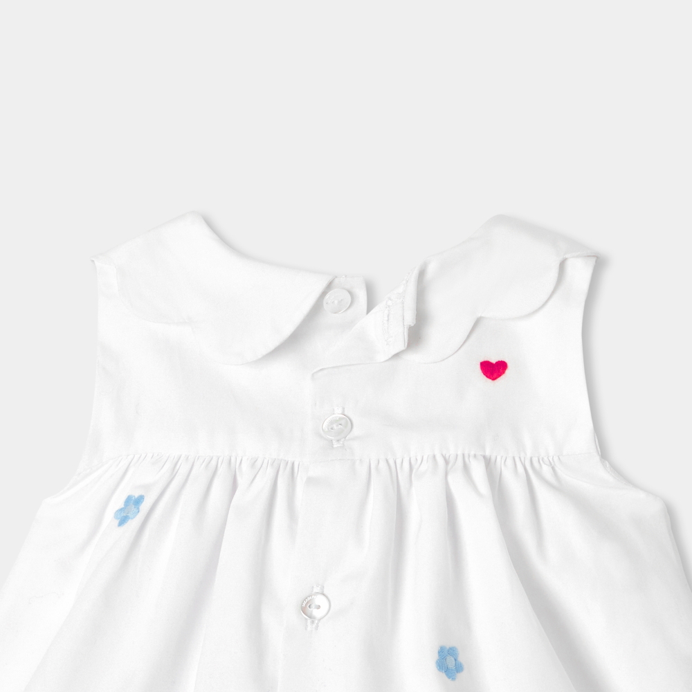 Yenidoğan Kız Bebek Nakışlı Poplin Elbise