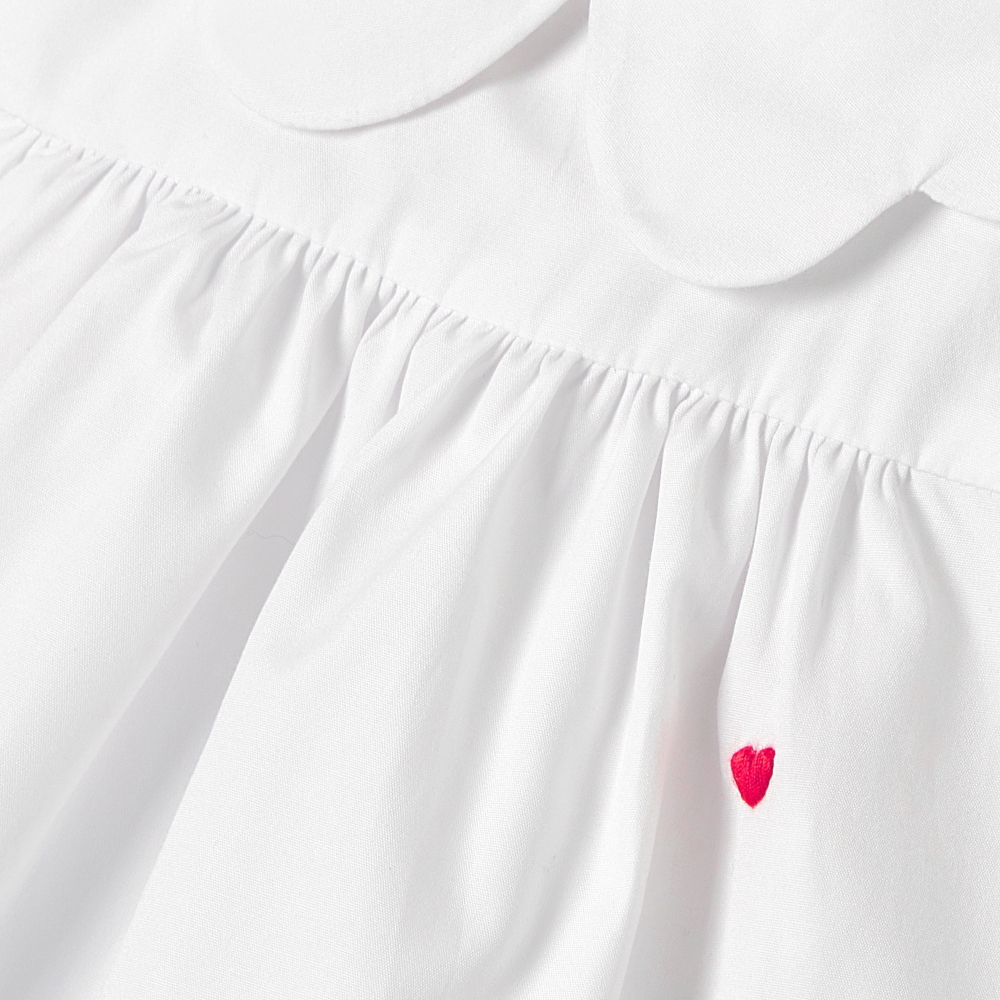 Jacadi’nin zarif stilini yansıtan bu kız bebek elbise, pamuk poplin kumaşıyla şık ve hafif bir kullanım sunar. Dalgalı yakası, kalp ve çiçek nakış detaylarıyla modern ve zarif bir görünüm kazanan model, pamuk voile astarı sayesinde ferah bir konfor sağlar. Uyumlu bloomer şort ile tamamlanan bu tasarım, yaz ayları için ideal bir seçenektir.