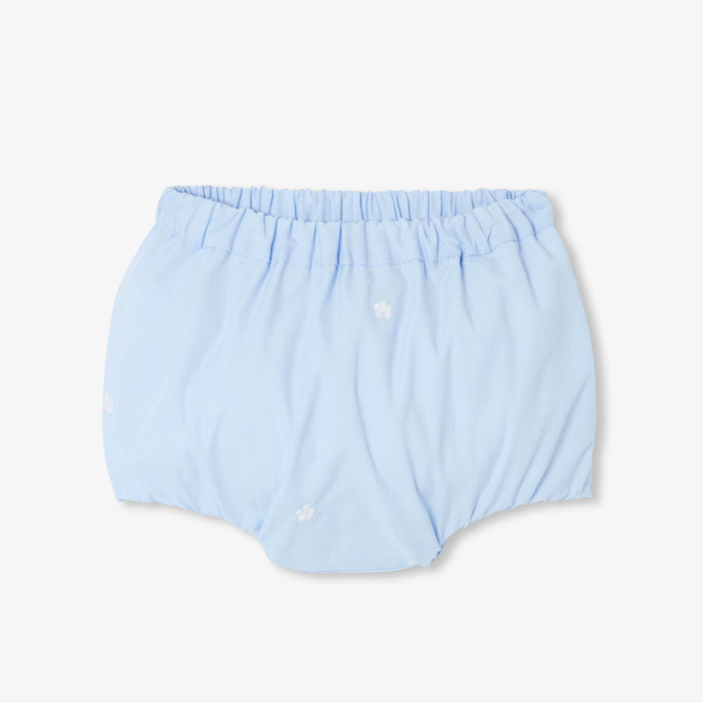 Zarif ve özenli detaylarıyla öne çıkan bu kız bebek takım, baharın gelişini şık bir şekilde karşılar. Arkadan düğmeli üst, Peter Pan yaka ve fırfırlı kol detaylarıyla zenginleştirilirken; astarlı bloomer şort ile tamamlanan bu ikili, nakışlı çiçek detaylarıyla romantik ve zarif bir görünüm sunar. İlkbahar ve yaz ayları için ideal bir seçimdir.