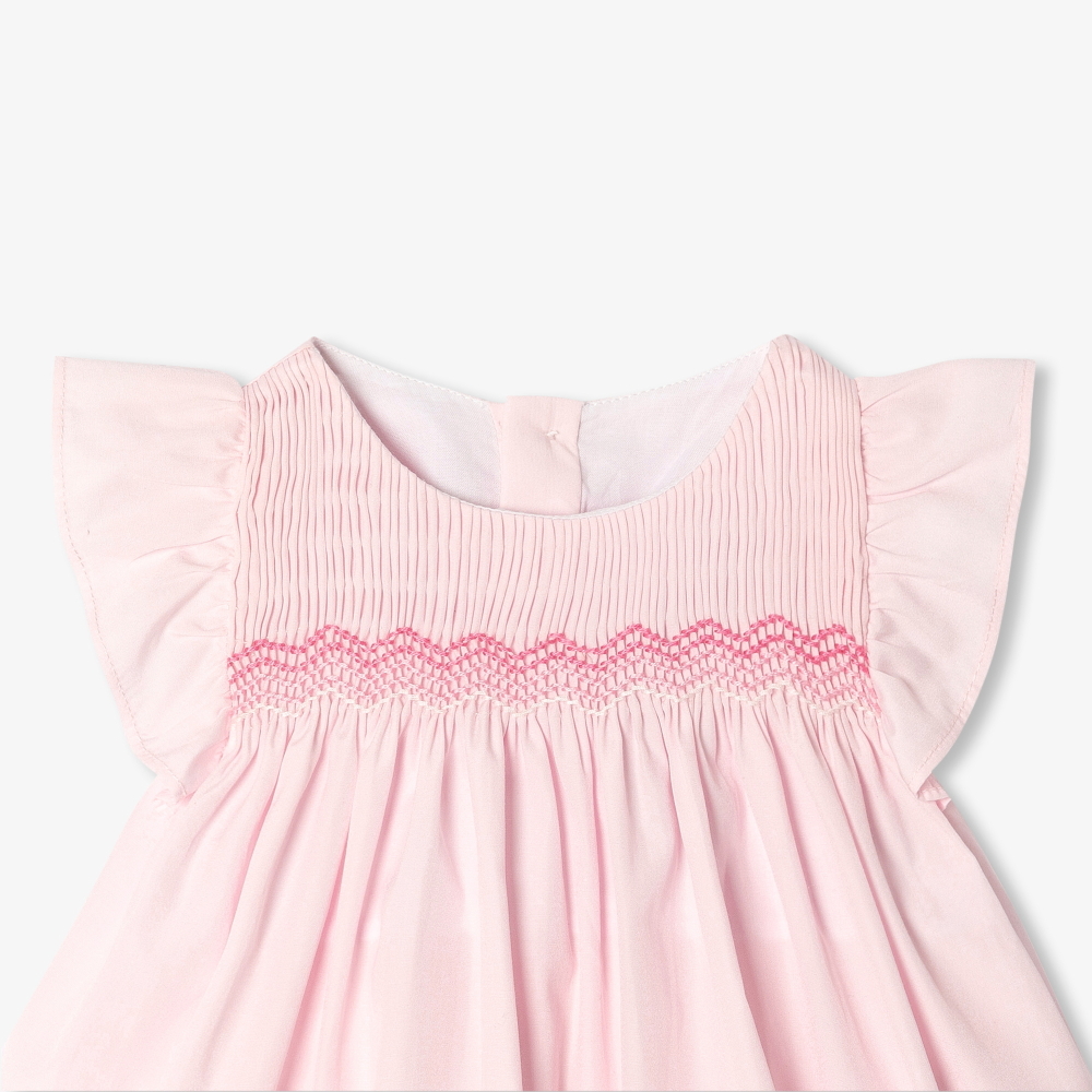 Jacadi’nin zarif stil anlayışını ve incelikli işçiliğini yansıtan bu iki parçalı kız bebek takım, pamuk poplin kumaşıyla yaz gardırobuna rafine bir dokunuş katıyor. Fırfırlı kol oyuntularına sahip bluz, elde işlenmiş smock bib detayıyla öne çıkarken; tamamen astarlı bloomer bu şık ikiliyi kusursuz şekilde tamamlıyor. Hem günlük şıklıkta hem de tatil valizinde yer bulacak bu seçkin tasarım, yaz sezonuna zarif bir eşlik sunuyor.
