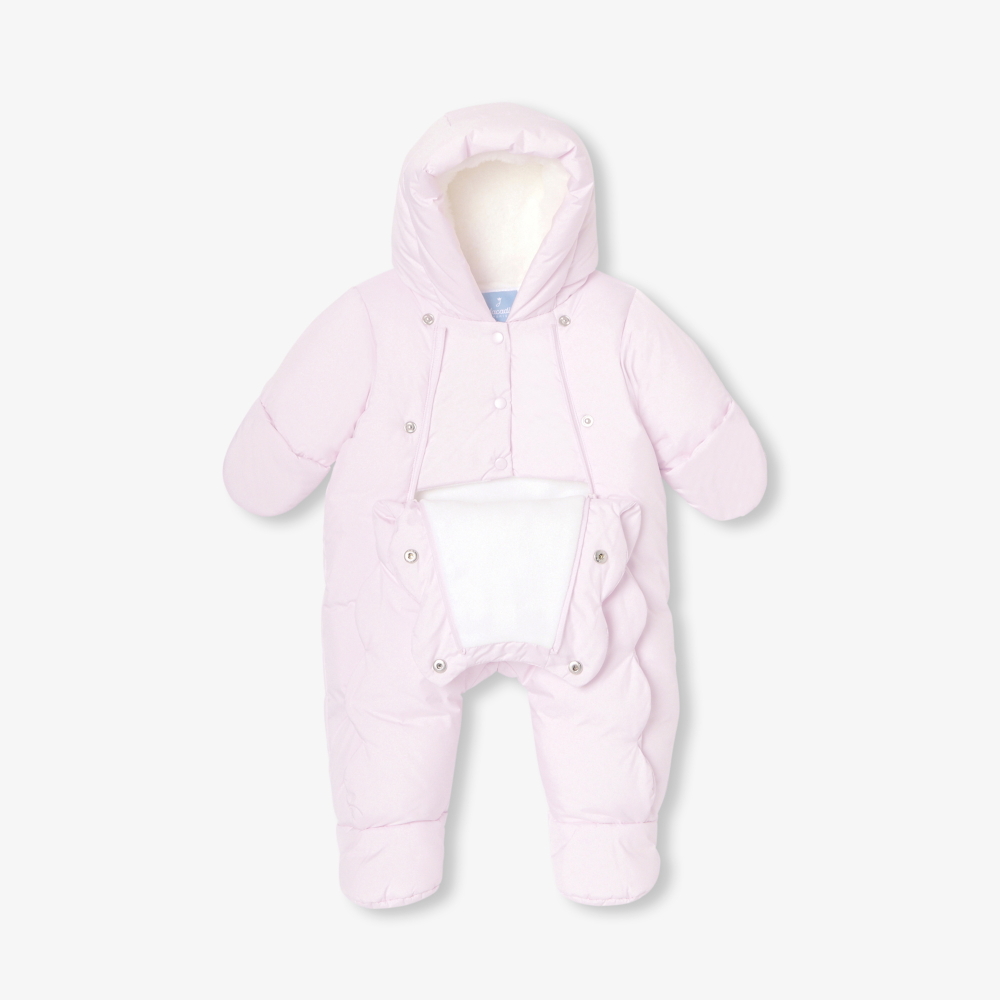 Bu zarif ve şık kız bebek astronot mont, doğumhaneden itibaren bebeğinizin ihtiyaç duyduğu tüm konforu ve sıcaklığı sağlayacaktır. Çift fermuarlı ön açıklığı sayesinde bebeğinizi yatar veya oturur pozisyonda giydirmek için pratik ve iyi düşünülmüş, mikro polar astar, suni kürk astarlı kapüşon ve entegre eldivenler, soğuğa karşı koymak için mükemmel olan bu güzel taraklı parçayı tamamlar.