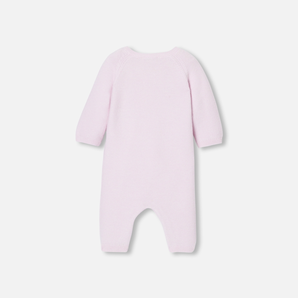- Sürdürülebilir yün ve organik pamuktan yapılmış kız bebek tulumu